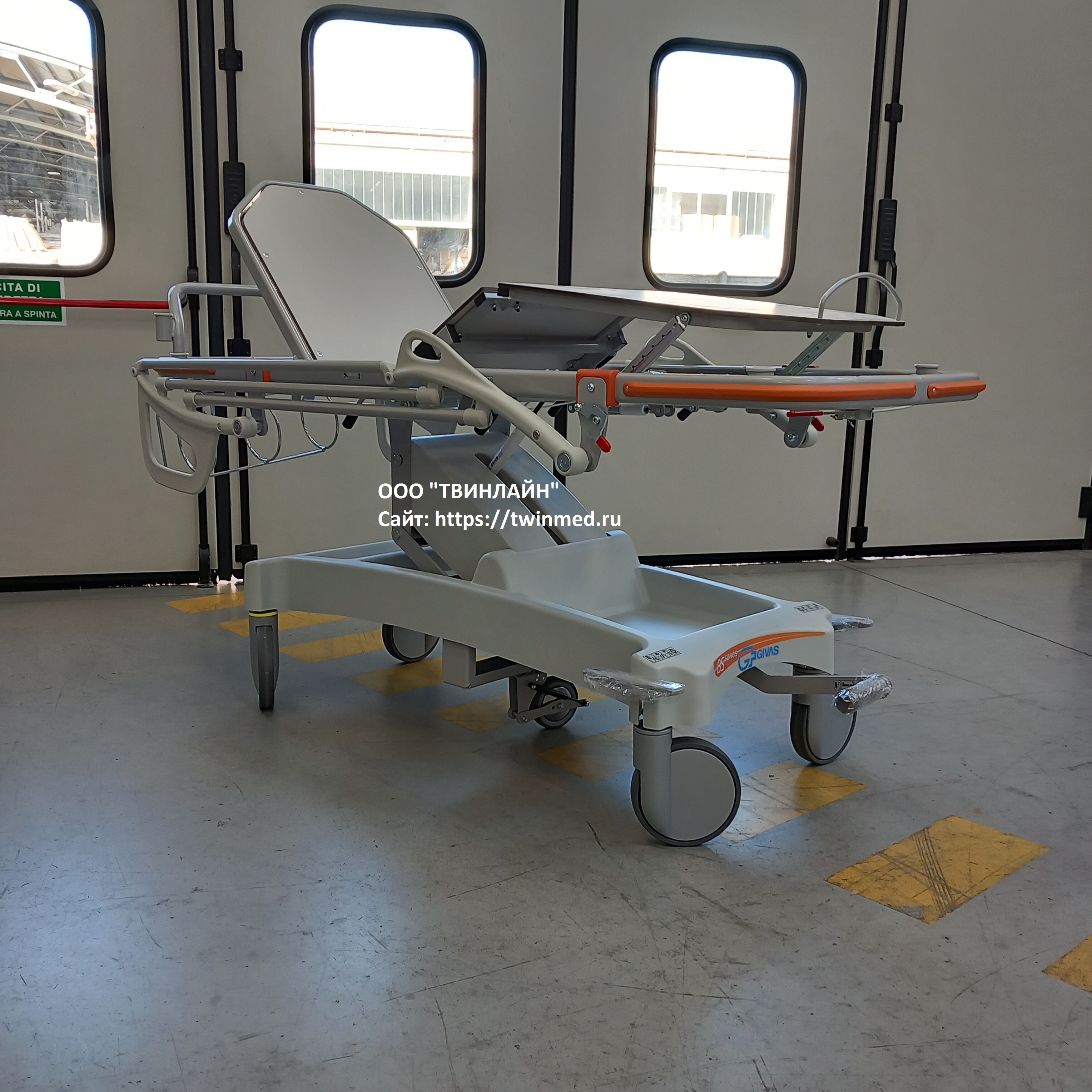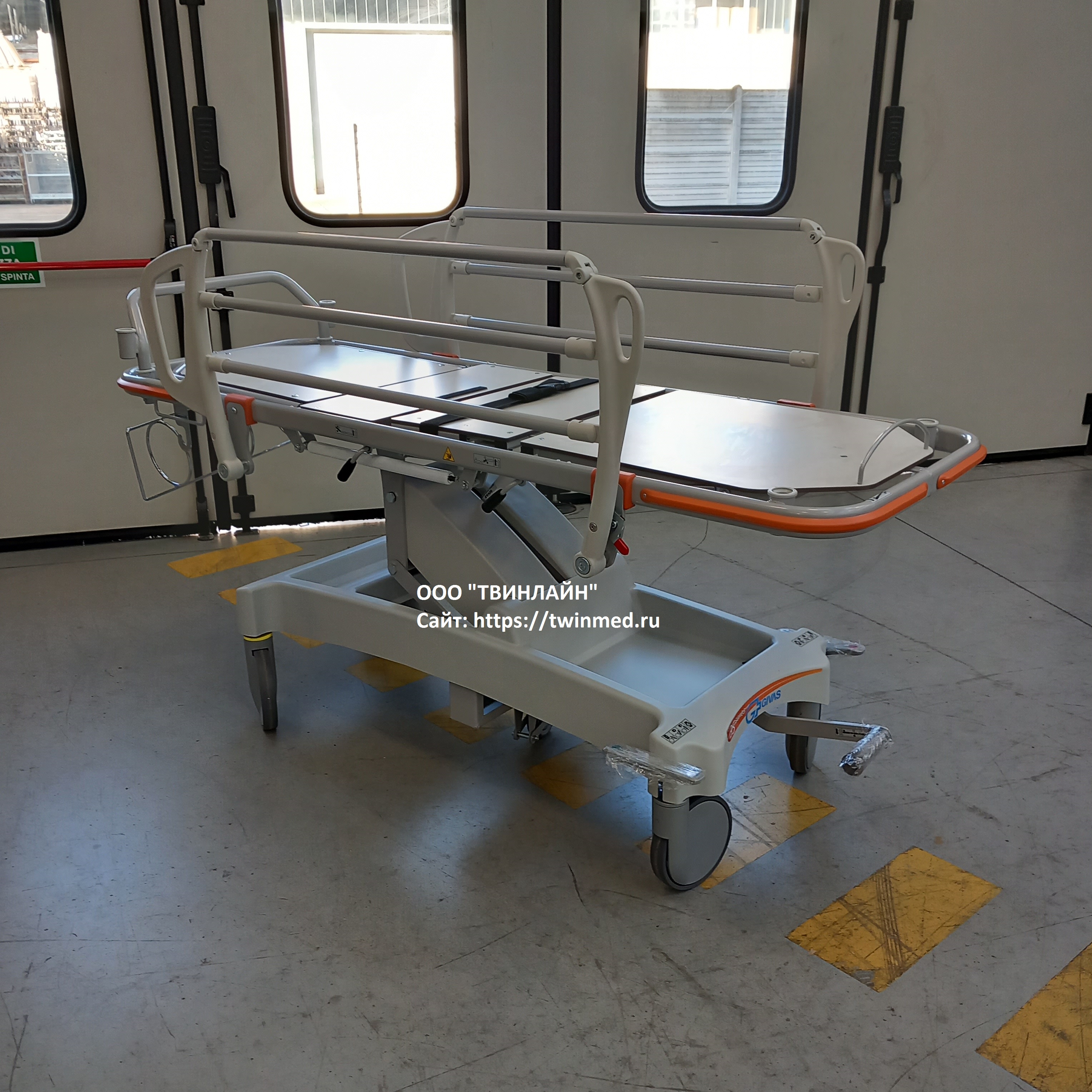 Медицинская каталка с подъемным механизмом, 4-х секционная рентгенопроницаемая модель GIVAS BS1512 для перевозки больных, с изменяемой высотой ложа от 510 до 900 мм при помощи гидравлического привода, с пневматическими регулировками спинной и тазобедренной секций и ручной регулировкой положений Тренделенбург/Антитренделенбург, предназначена для оказания экстренной медицинской помощи больному во время перемещения от машины скорой помощи до операционного блока, а также для межкорпусной больничной транспортировки пациента в лечебных учреждениях и проведения различных диагностических и лечебных процедур.